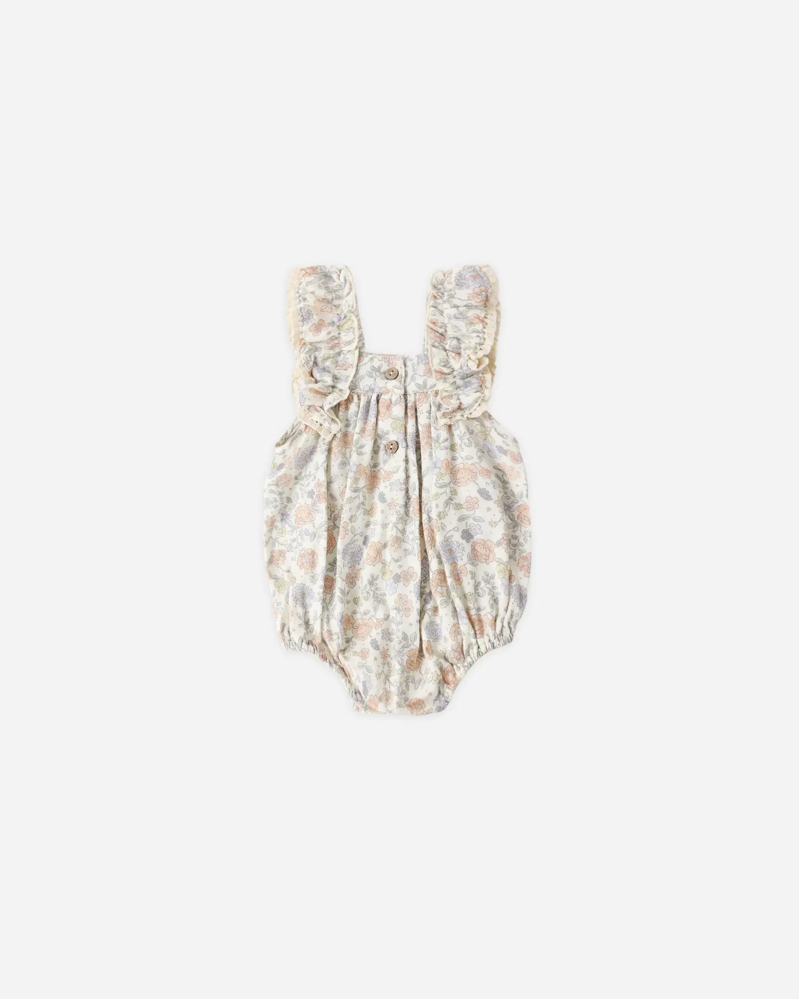 Our sweet Maya Romper features flutter straps and bottom snaps for an easy breezy look.